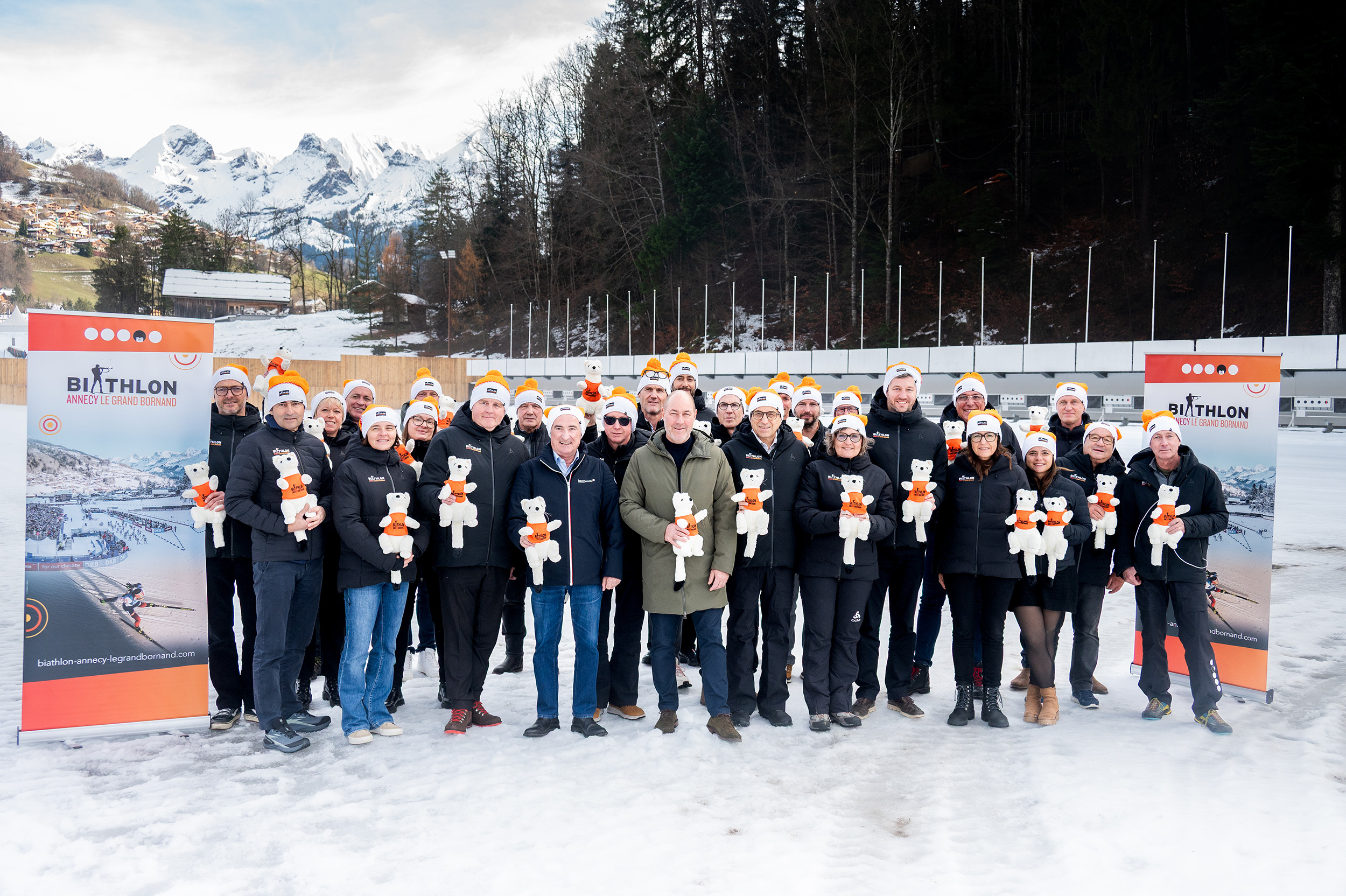 Representatives of the local executive committee gathered around André Perrillat-Amédé, president of the organising committee and mayor of Le Grand-Bornand, Alexandre Mulatier-Gachet, 1st deputy representing the mayor of Annecy François Astorg, Catherine Allard, deputy mayor for sports for the city of Annecy, Fabien Saguez, president of the French Ski Federation, Christophe Fournier, regional councillor for Auvergne Rhône-Alpes, Marcel Cattanéo, departmental councillor for Haute-Savoie, and Sylvie Becaert, patron of the BMW IBU Biathlon World Cup Annecy-Le Grand-Bornand.